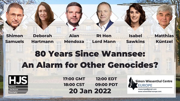 This 20 January, the Simon Wiesenthal Centre, the Henry Jackson Society and the House of the Wannsee Conference convened a Zoom webinar on the subject: “80 Years Since Wannsee: An Alarm for Other Genocides?”